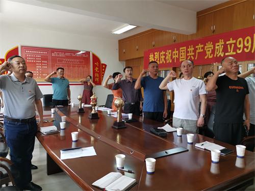 雙峰分公司黨支部組織全體黨員召開慶祝建黨99周年座談會,黨支部書記吳國柱主持座談會,首先全體黨員在黨旗下重溫入黨誓詞。接著吳書記組織全體黨員學習了習近平總書記“關(guān)于黨的建設(shè)講話”片段。參會黨員就如何結(jié)合企業(yè)實際,樹立黨員的先鋒模范作用,發(fā)揚黨組織的戰(zhàn)斗堡壘作用來促進企業(yè)和諧穩(wěn)步、健康發(fā)展紛紛獻計獻策。最后黨員們進行了思想交流,共商企業(yè)發(fā)展大計。